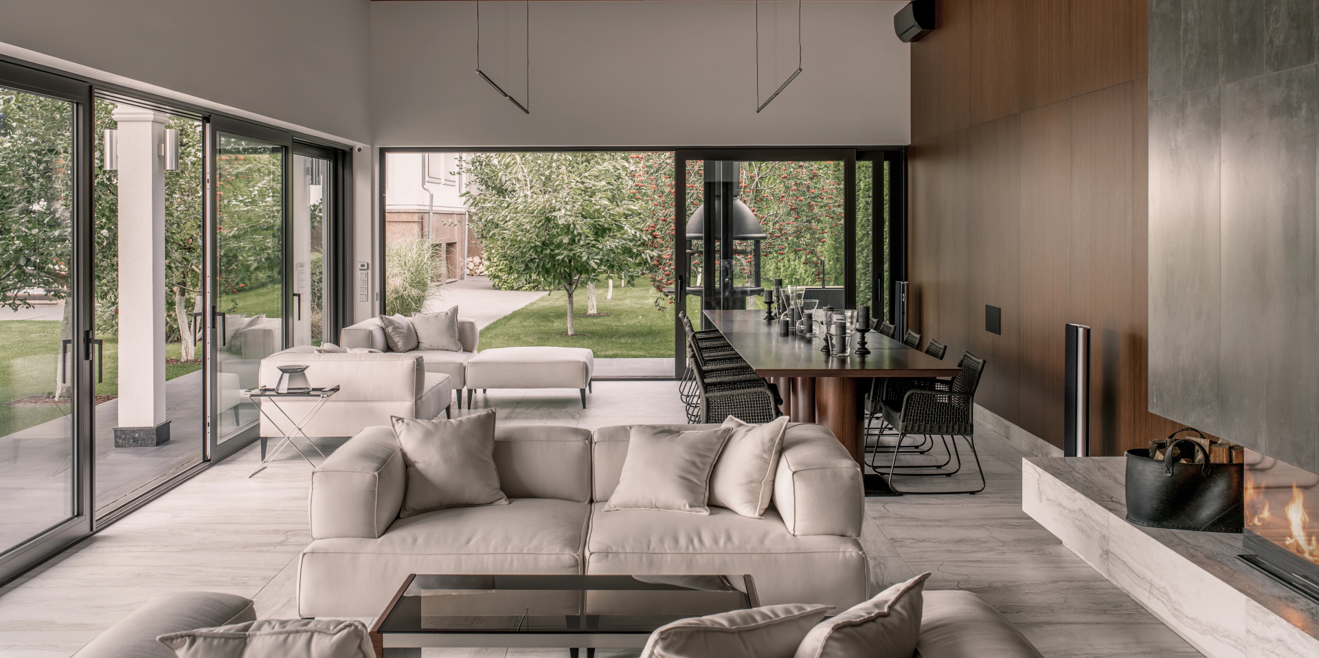 Through precision engineering and reinforced structural headers, we allow two sliding or folding units to meet at a 90-degree angle without the need for a fixed vertical pillar. When the doors are retracted, the interior and exterior become one continuous environment.
