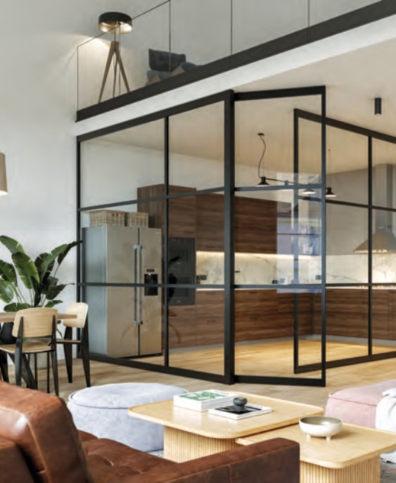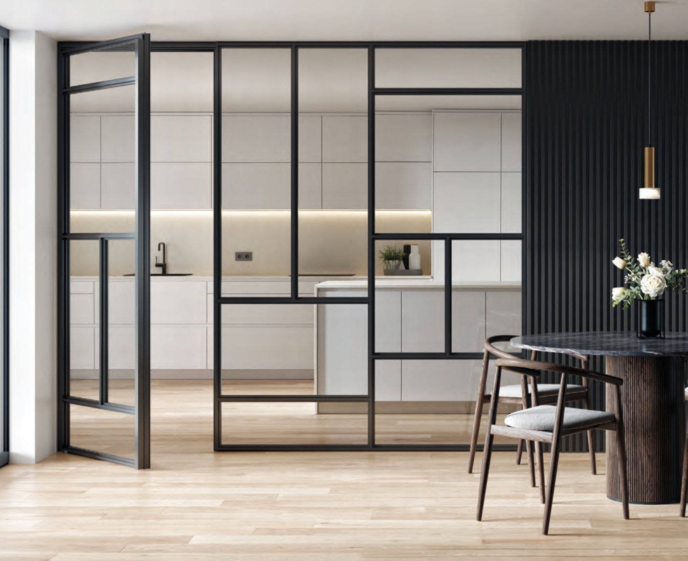 The ECO Interior system is a premium aluminum-framed glass partition and door solution that delivers the iconic industrial aesthetic of steel at a fraction of the weight and cost. With ultra-slim profiles, customizable configurations, and over 200 RAL color options, it transforms residential and commercial spaces with timeless elegance and maximum natural light.