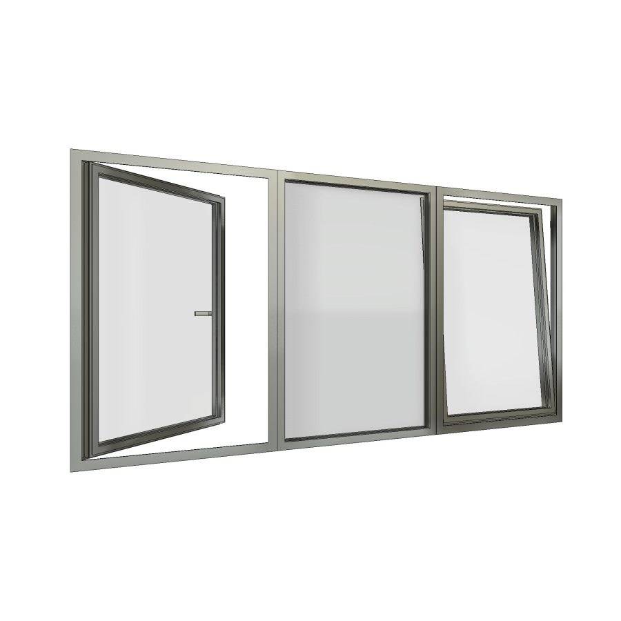 Triple sash window, is a type of window that can have 1,2 or 3 operable sashes. A tilt and turn window can open inward from side hinges or tilt inward at the top like a hopper window. It can be also fitted with fixed window. Rain protection and draft-free ventilation are both provided by the tilt position. Tilt & Turn windows operate as casement windows in the turn position, swinging their entire glass surface open. Available in quadruple, triple, or double glazing.
